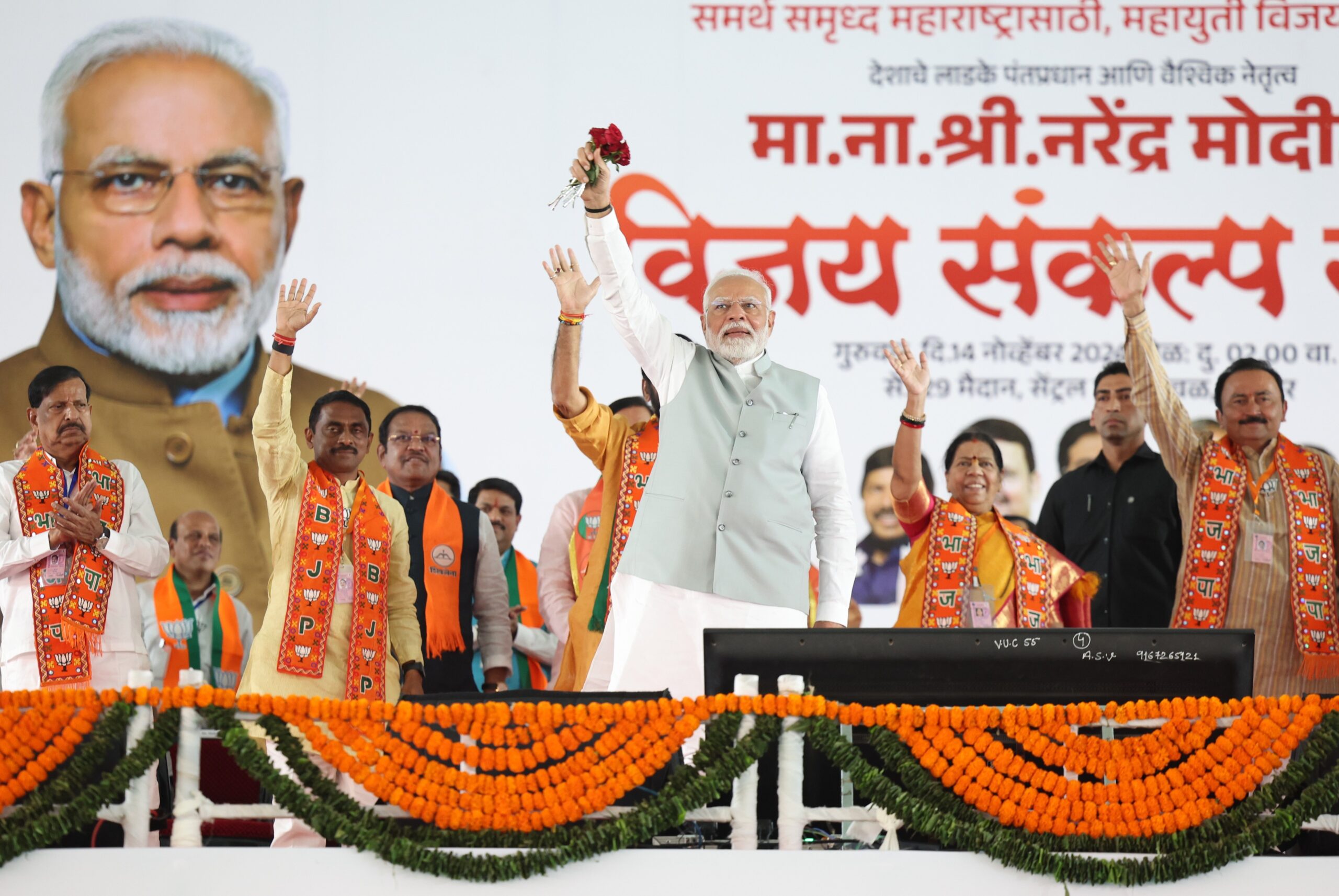 प्रधानमंत्री मोदी ने अपने भाषण का समापन करते हुए कहा कि महाराष्ट्र का भविष्य भाजपा के हाथों में सुरक्षित है। उन्होंने कहा, “भाजपा- महायुति आहे, गति आहे, महाराष्ट्राची प्रगति आहे” (अगर महायुति है, तो महाराष्ट्र में प्रगति है)। उन्होंने महाराष्ट्र के लोगों से भाजपा-नेतृत्व वाली महायुति सरकार को समर्थन देने की अपील की और कहा कि यही गठबंधन राज्य में विकास और सांस्कृतिक गौरव की गारंटी है।